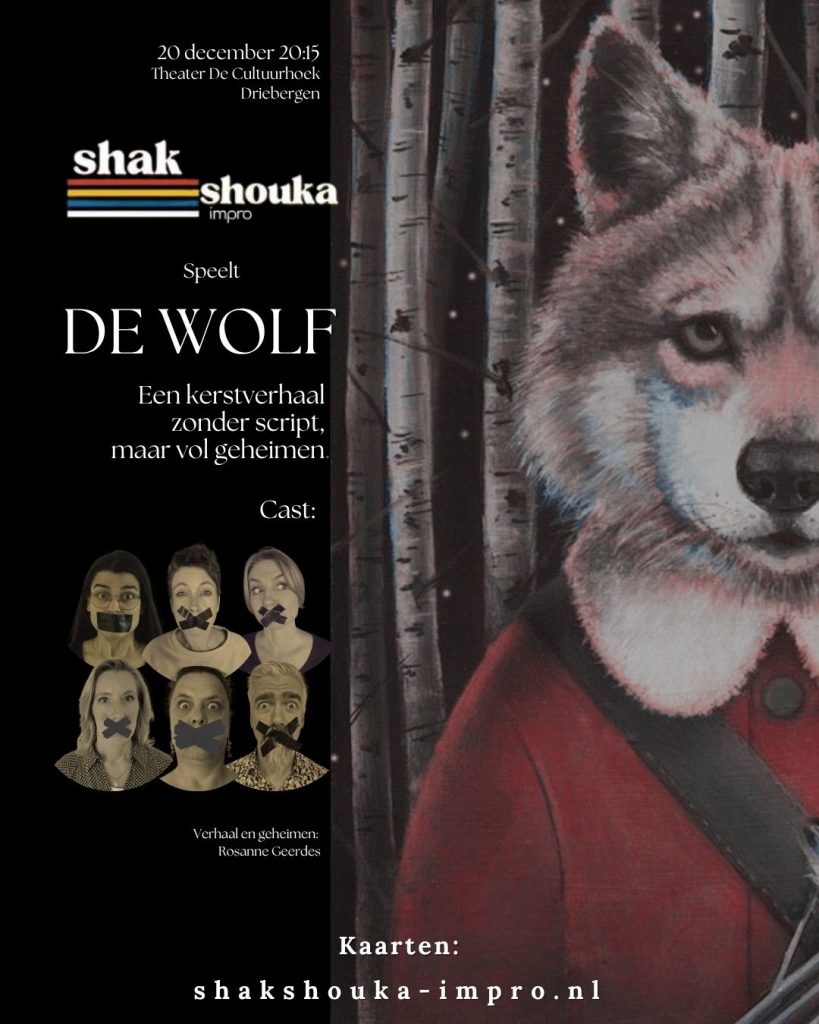 Op zaterdag 20 december spelen we onze kerstvoorstelling ”De wolf” in Cultuurhoek in Driebergen-Rijsenburg.